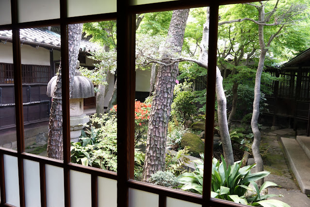 高低差のある庭には多くの木々とともに、四季の花も見られ、訪れたときは大きな躑躅が真っ赤な花を咲かせていた、モミジも多く、秋には紅葉も素晴らしいだろう。